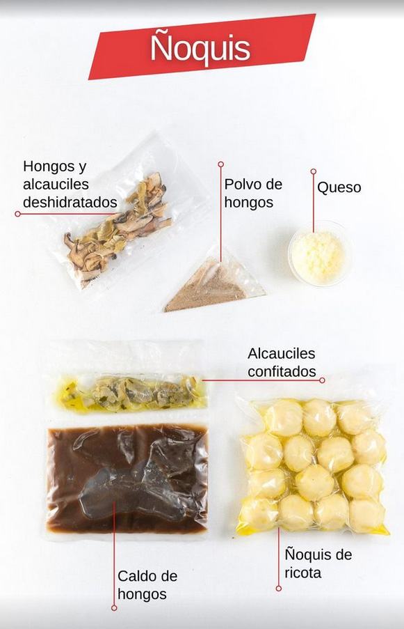- Gnocchi de ricotta, queso, hongo y alcaucil